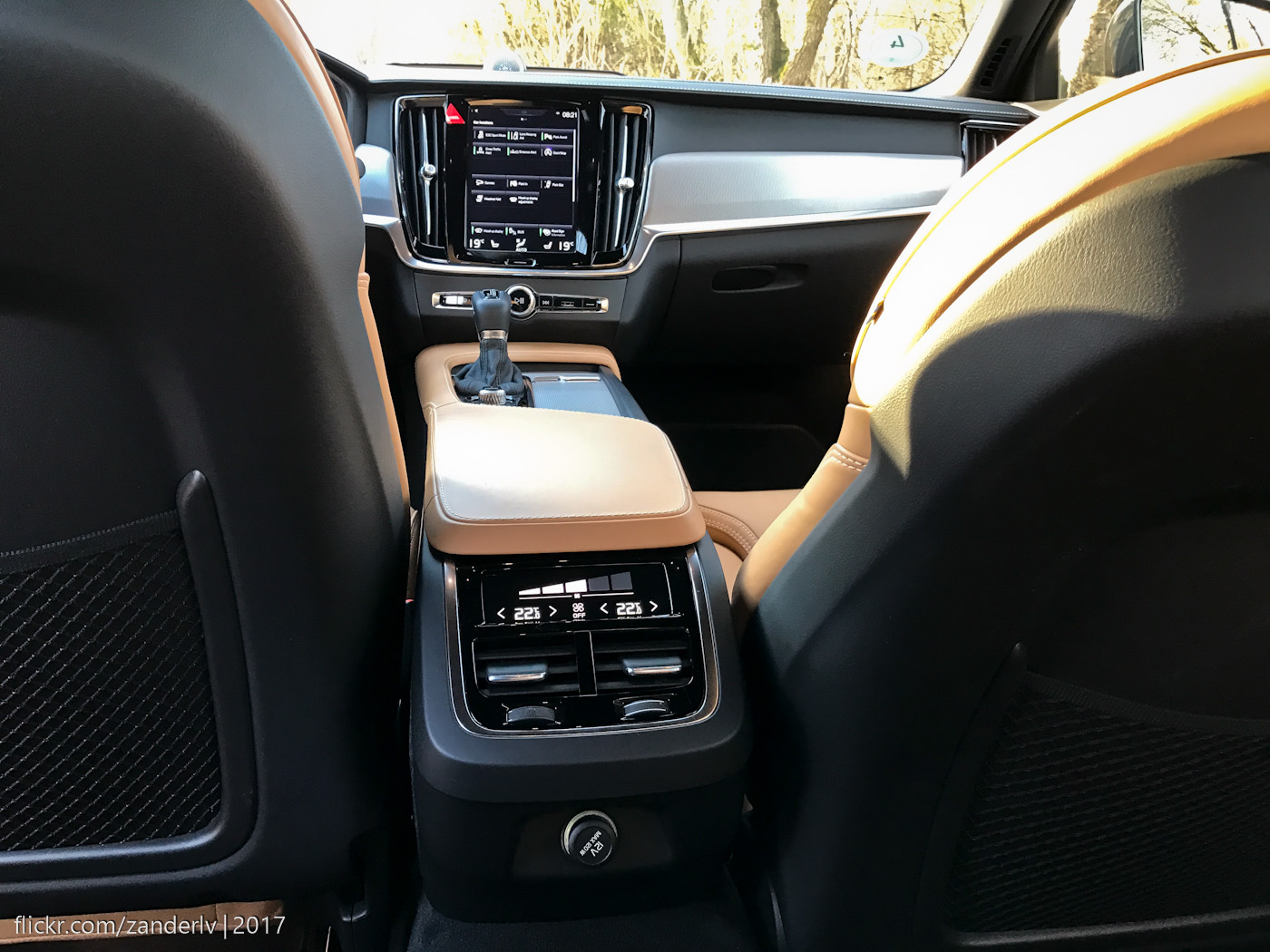 Климат 4-х зонный, так что пассажиры тоже имеют сенсорный экранчик для этой функции, а также свой, персональный прикуриватель-зарядку: