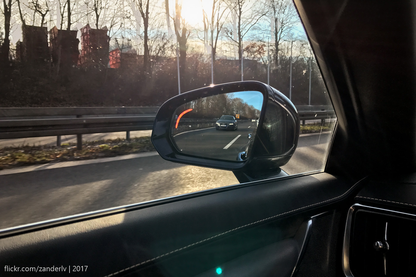 Зеркало. Люблю это вольвовское зеркало. Да есть и у других похожие, но это, оно самое самое. Тонкая рамка, чистая картинка, затемнение, все дела.