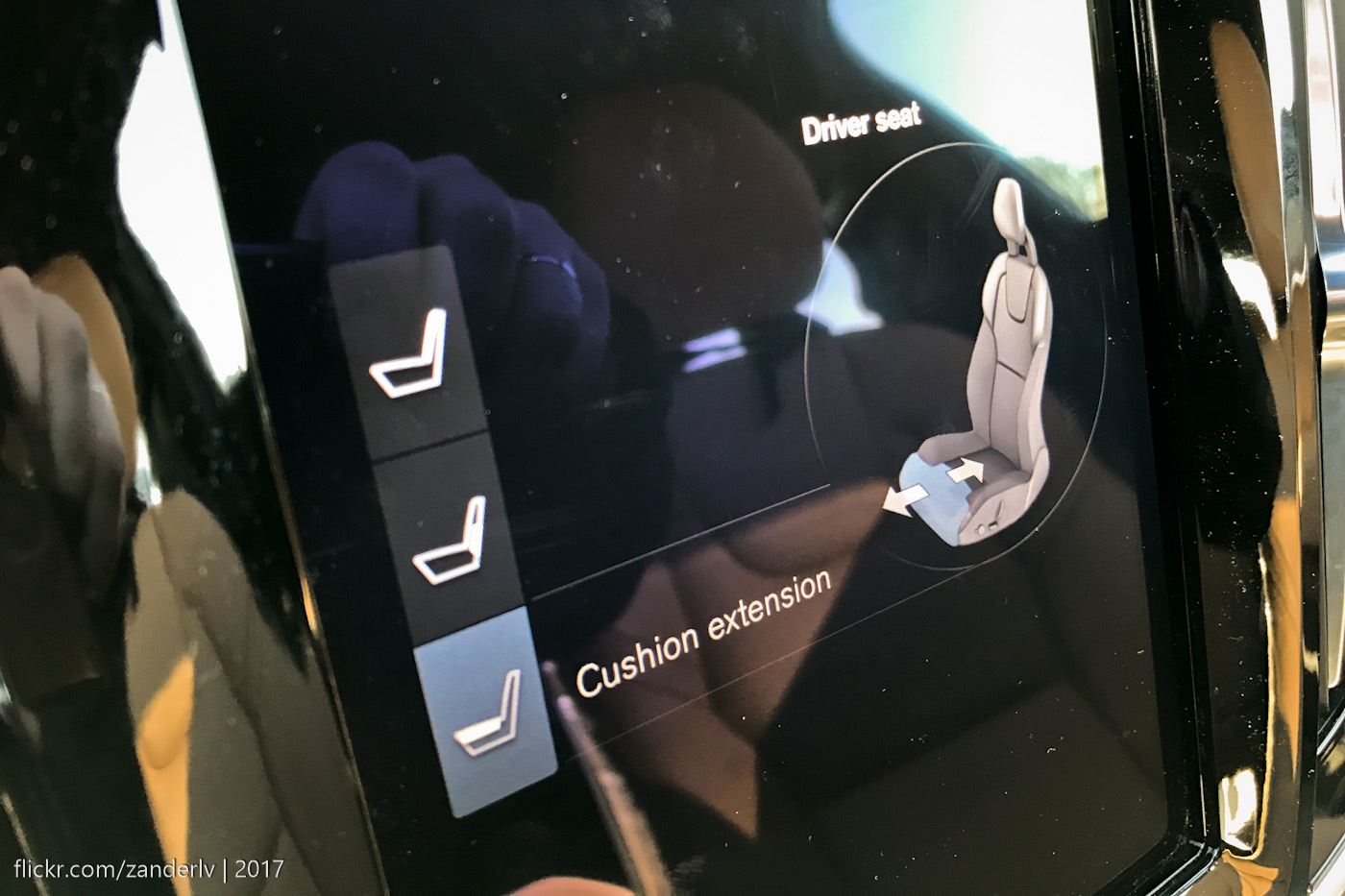 Три части сидения регулируются рукояткой и кнопочками в привычном месте, сбоку на кресле, но вот графическая информация отображается на экране.