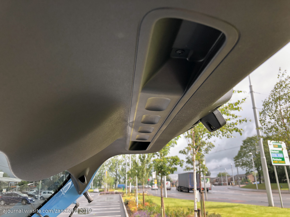 Нету абсолютно ручек на потолке, видимо нет надобности в этой машине держатся за что-то, вы просто будете держаться головой за стену. Но сзади есть два крючка, расположенные в сомнительном месте – если повесить что-то, оно скорее будет просто болтаться у заднего пассажира перед носом.