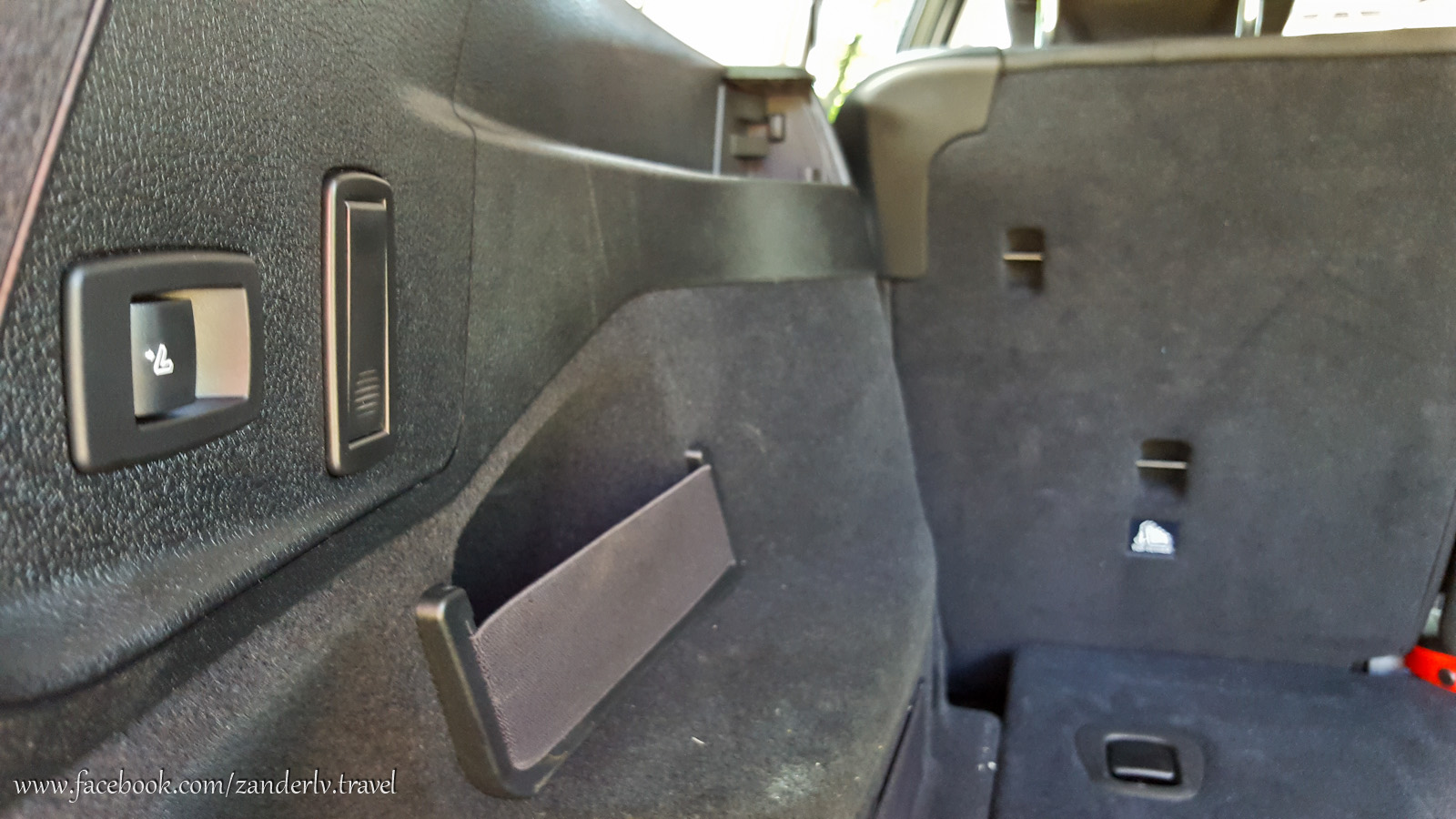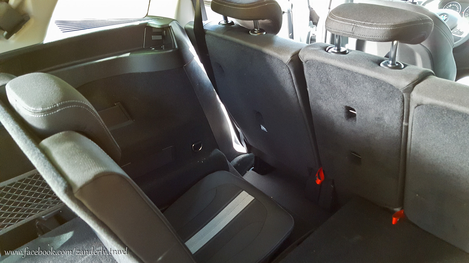 Второй ряд сидений можно откинуть либо одним рычажком на стенке сзади, либо потянув за красные ремешки