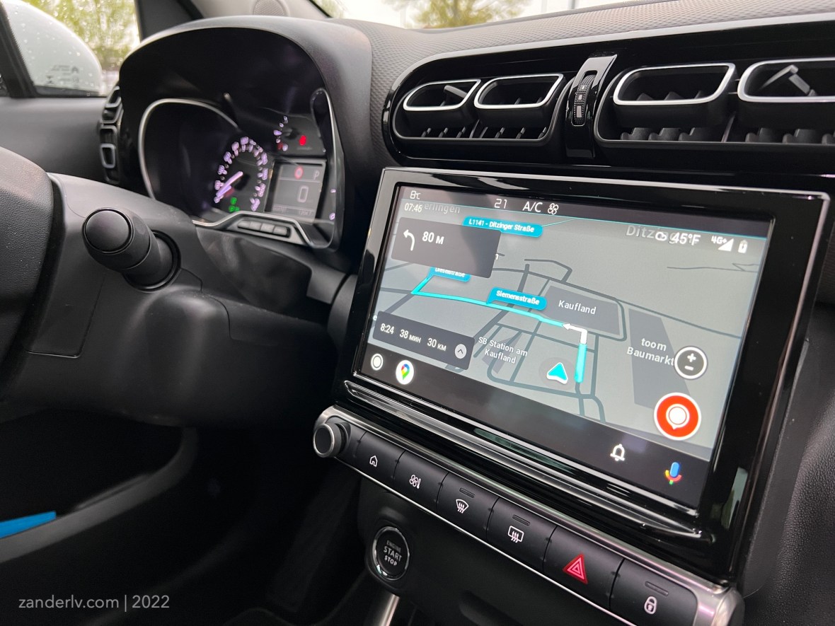 Дисплей имеет хороший запас яркости, а благодаря наличию Apple CarPlay и Android Auto, навигация, например Waze смотрится просто отлично. Штатной навигацией не пользуюсь и не собираюсь.