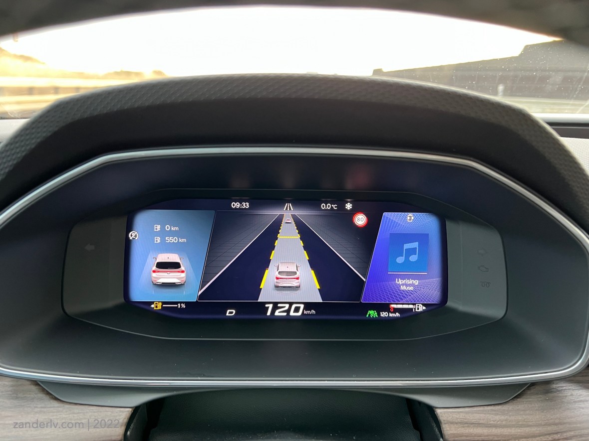 Круиз контроль адаптивный, работает вполне адекватно, отличает автомобили на дороге и даже показывает их как Тесла, различает грузовики, правда все остальные автомобили рисует как Сеат. Не очень понятно, для чего он это всё показывает на дисплее перед носом, если всей этой информацией машина особо не пользуется, кроме как при перестроении и нахождении помех в слепой зоне.