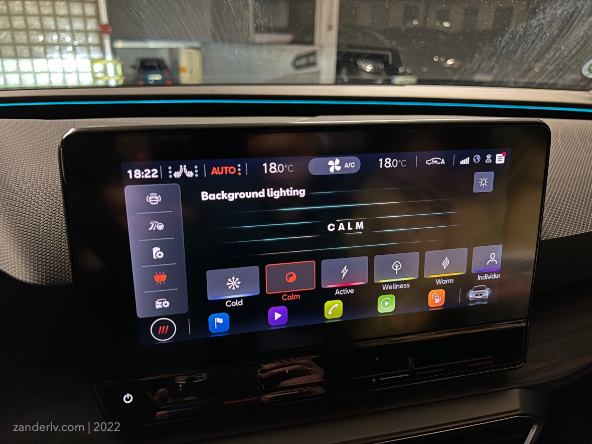 Цвета эмбиентной подсветки настраиваются и выглядит это неплохо, можно уменьшить яркость, чтобы в ночное время это и выглядело красиво и ехать не мешало.