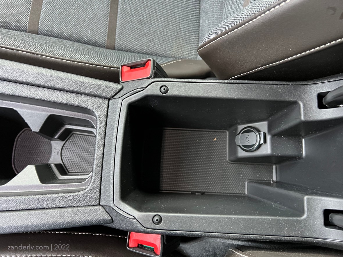 Из плюсов стоит отметить, что здесь есть беспроводной Apple CarPlay и Android Auto. Это реально удобно, особенно когда у тебя не оказалось с собой нужного кабеля, да и просто ничего не мешает. Работает он отлично, по крайней мере Apple CarPlay, Android я не проверял. Телефон в это время находится (не обязан, конечно) на беспроводной зарядке на наклонной прорезиненной полочке, из которой телефон никуда не вылетает и остается в нужном месте, правда греется постоянно, что не особо мне понравилось.