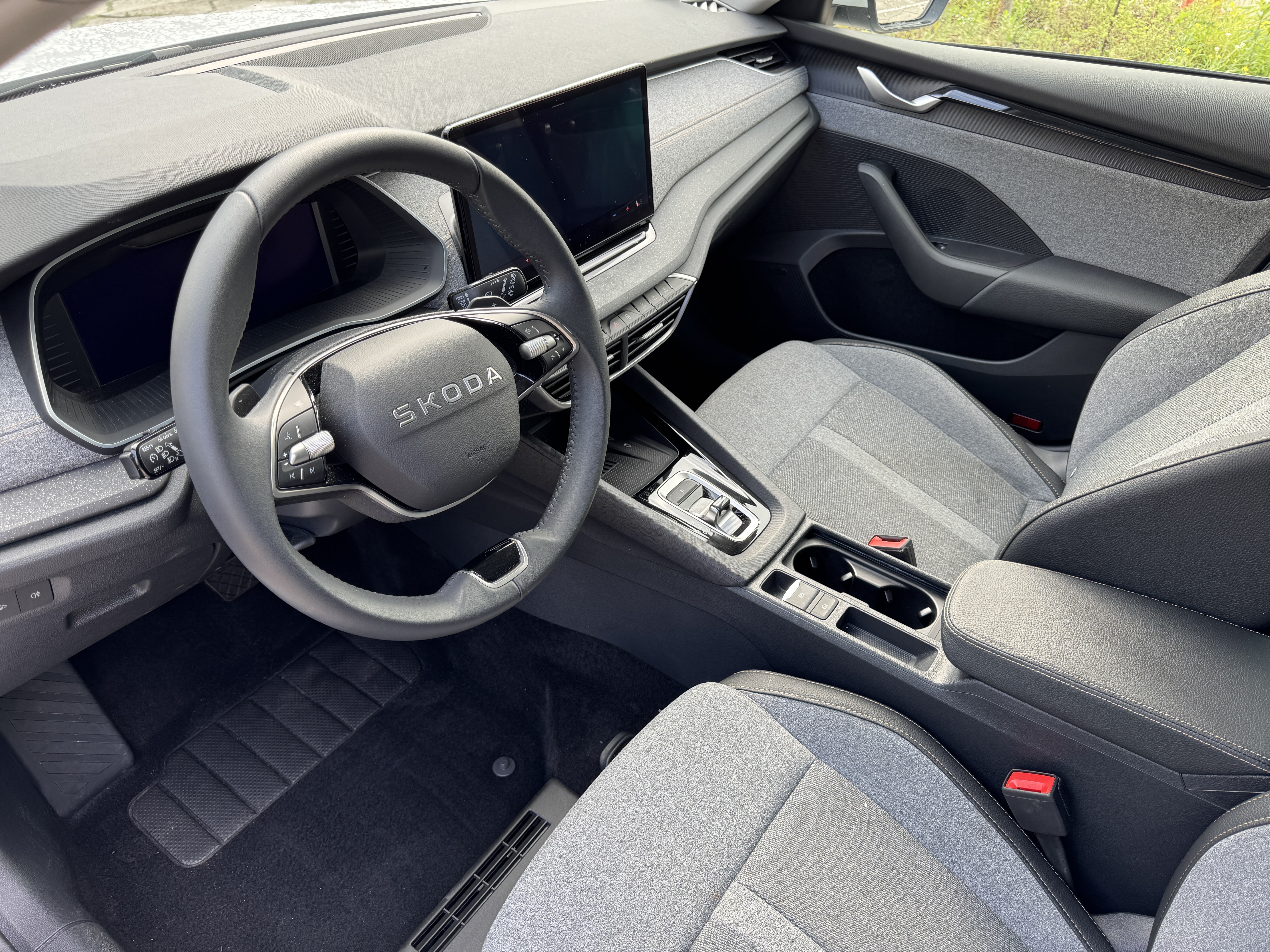 А здесь все новее, приятный руль. Комфортная посадка в хороших креслах. Никаких сенсорных кнопок на руле – Skoda ты супер.